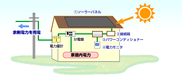 発電した電力は自家用の電気としてご家庭で使用するほか、余った電力を電力会社が買い取ってくれます。